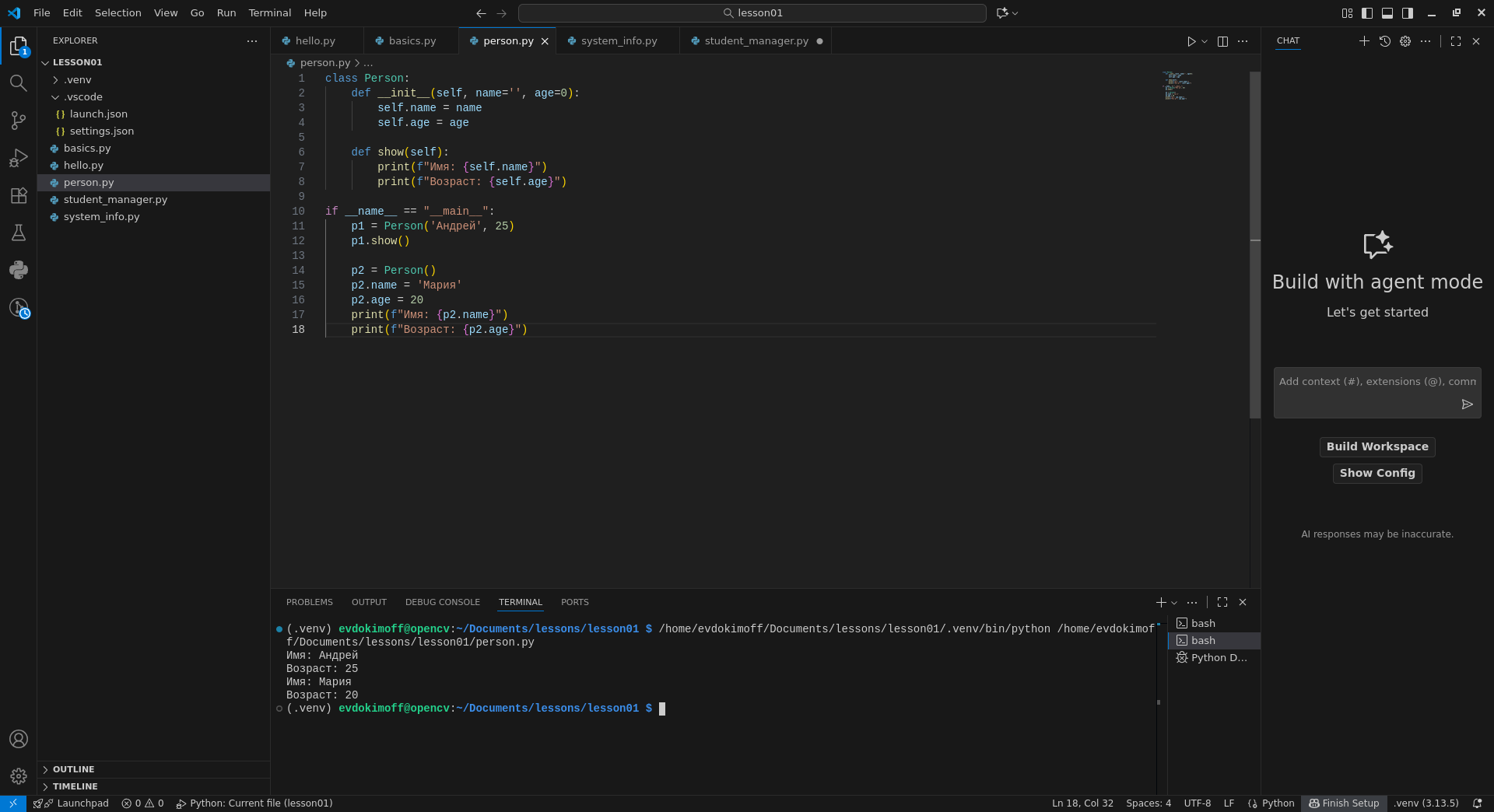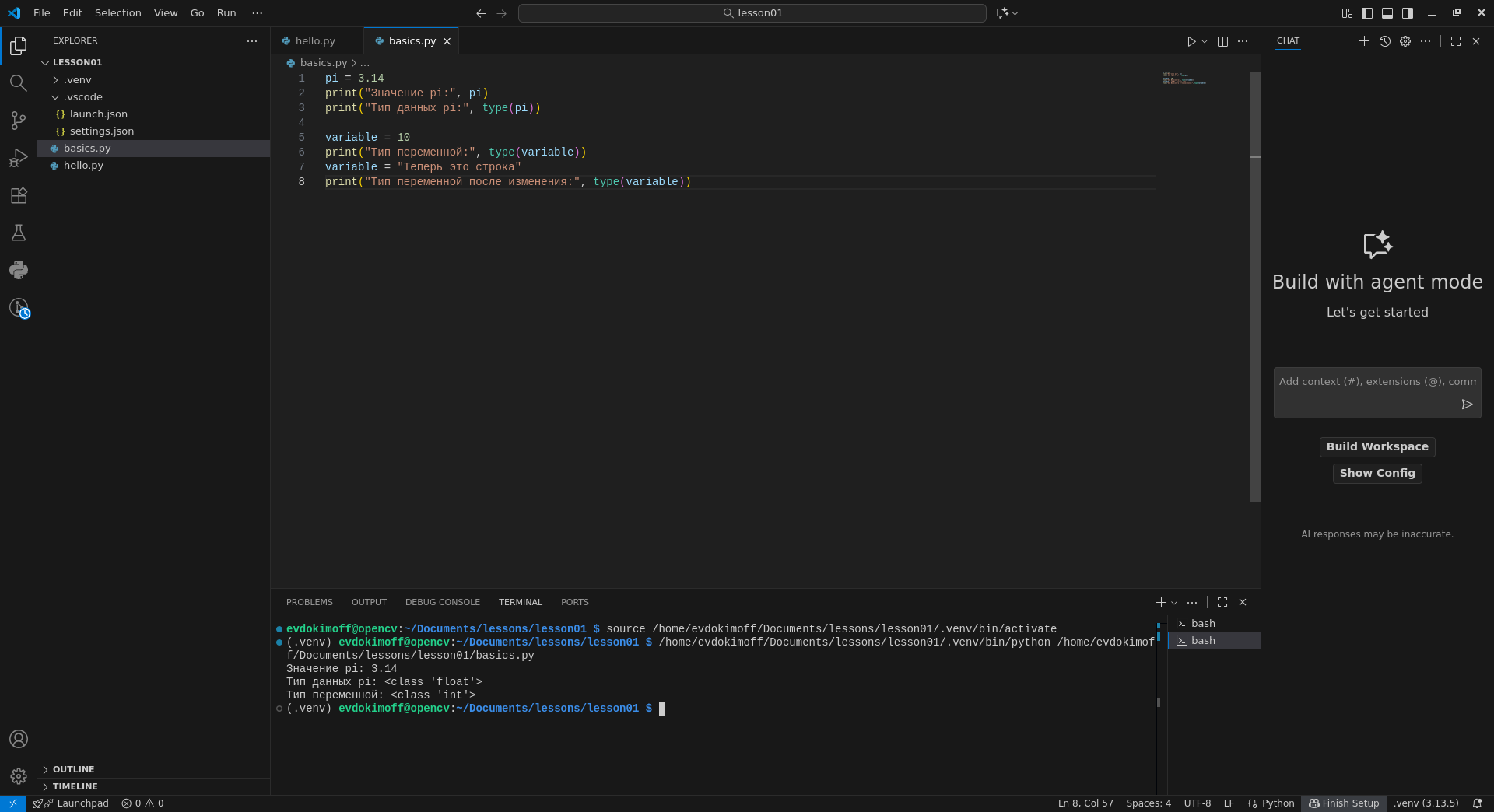Создайте файл basics.py в VSCode и добавьте следующий код: