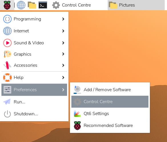 Нажмите на меню Raspberry в левом верхнем углу