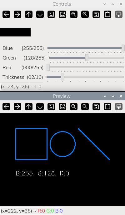 name- имя трекбараwindow_name- имя окна для привязкиvalue- начальное значение (0-255)count- максимальное значениеonChange- функция обратного вызова при изменении