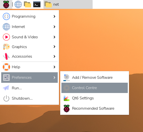Нажмите на меню Raspberry в левом верхнем углу