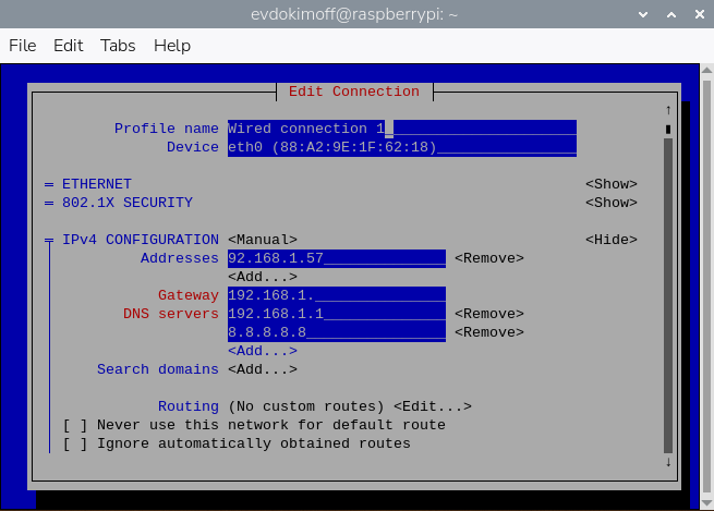 Настройка статического IP-адреса на Raspberry Pi через nmtui